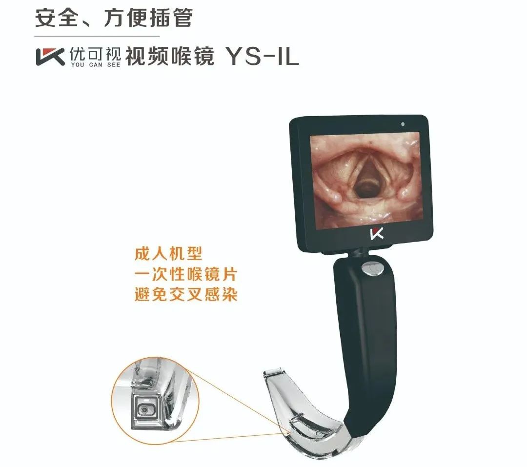 优可视麻醉视频喉镜YS系列,YS-IL&YS-IS搭配一次性喉镜片使用。YS-IL为成人机型,可搭配六种规格一次性喉镜片使用。YS-IS为儿童机型,可搭配四种规格一次性喉镜片使用。